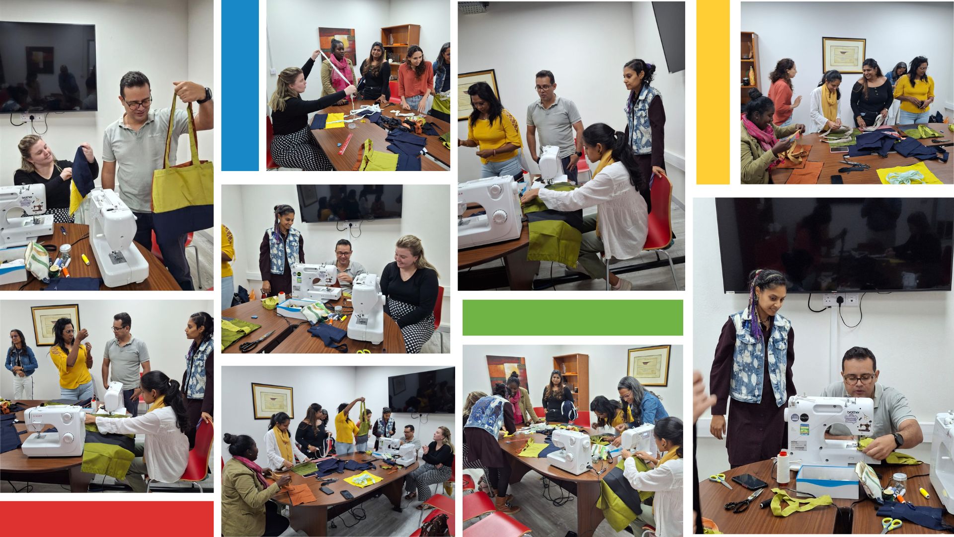 Rires, machines à coudre et tissus colorés sur la table : les Ateliers Circulaires de Panagora réinventent le quotidien au bureau avec une dose de créativité et de durabilité.