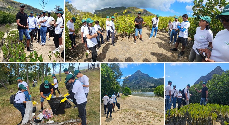 Sous le soleil du Morne, une vingtaine de collaborateurs d’Eclosia Corporate Services (ECS) ont troqué leurs bureaux contre un paysage de mangroves, d’eau salée et de vent marin. Ce jeudi 16 octobre, ils sont venus découvrir de près un site de restauration de mangroves dans le cadre du programme régional Varuna, mise en œuvre par Expertise France avec le soutien financier de l’Agence Française de Développement. Cette initiative redonne vie aux écosystèmes côtiers de cette région emblématique du sud-ouest.
